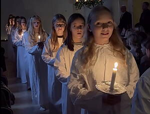 Pigerne fra 5. årgang gik traditionen tro luciaoptog i skolens gymnastiksal og skabte en helt særlig julestemning. Se videoen, der varer 2:42 min.