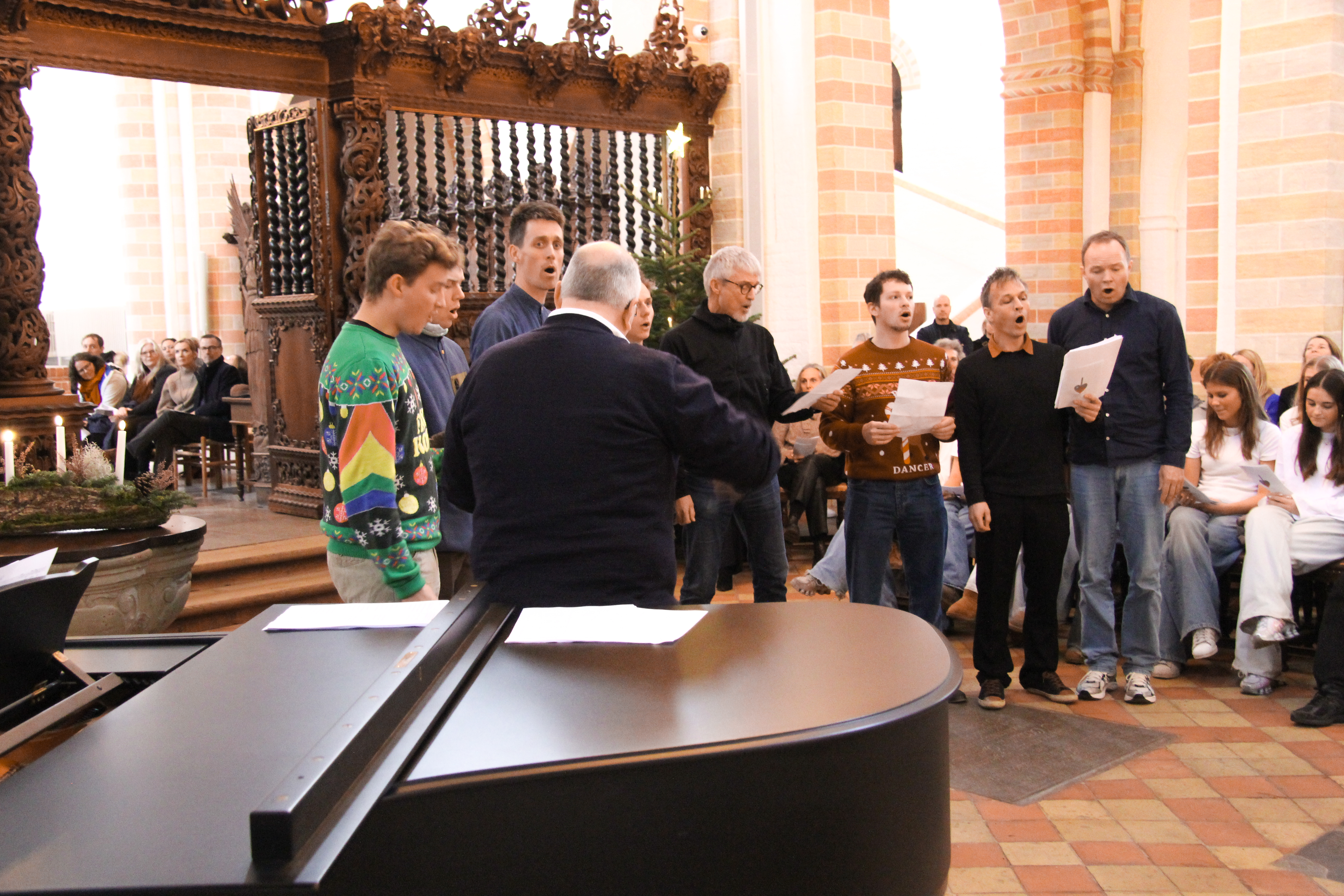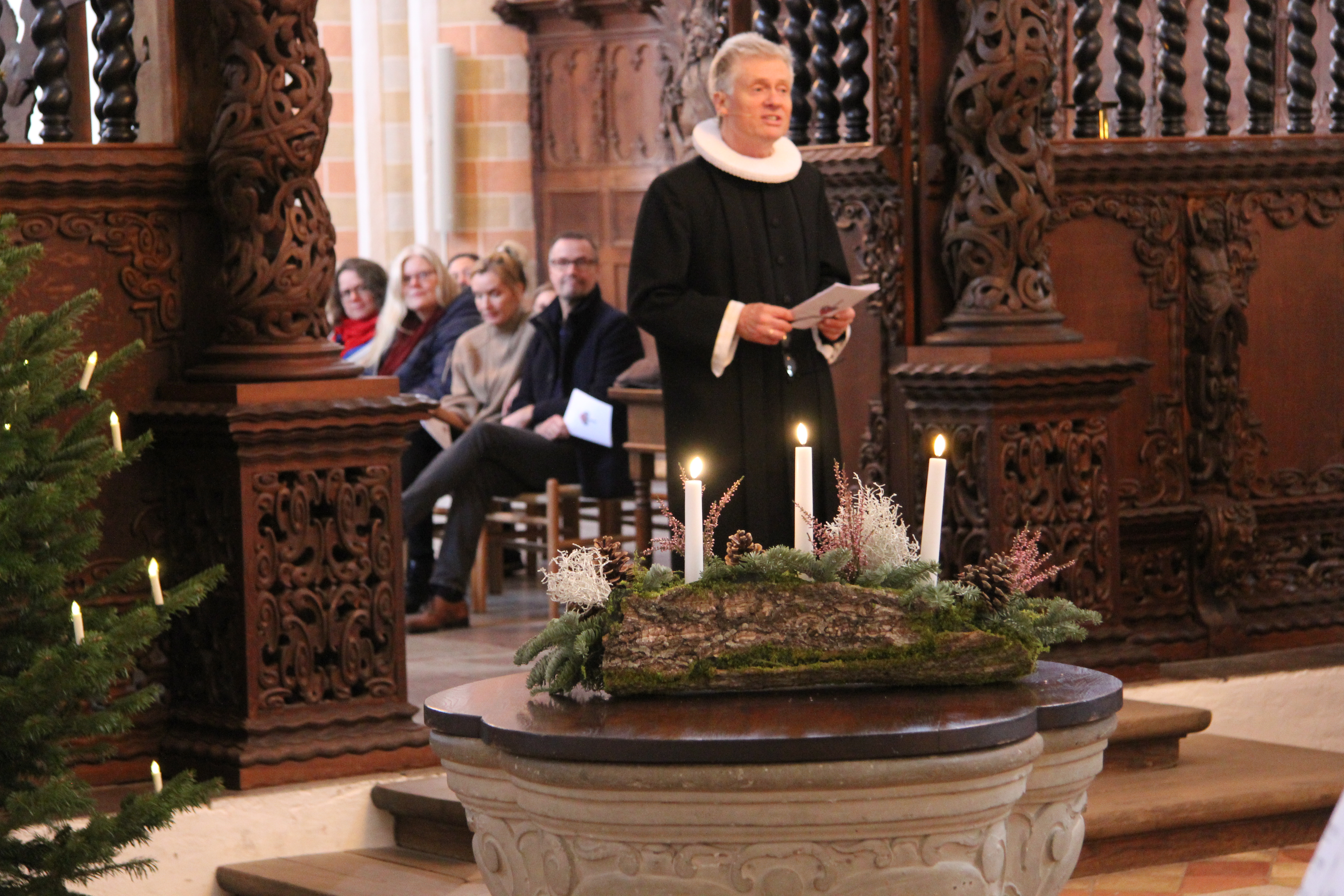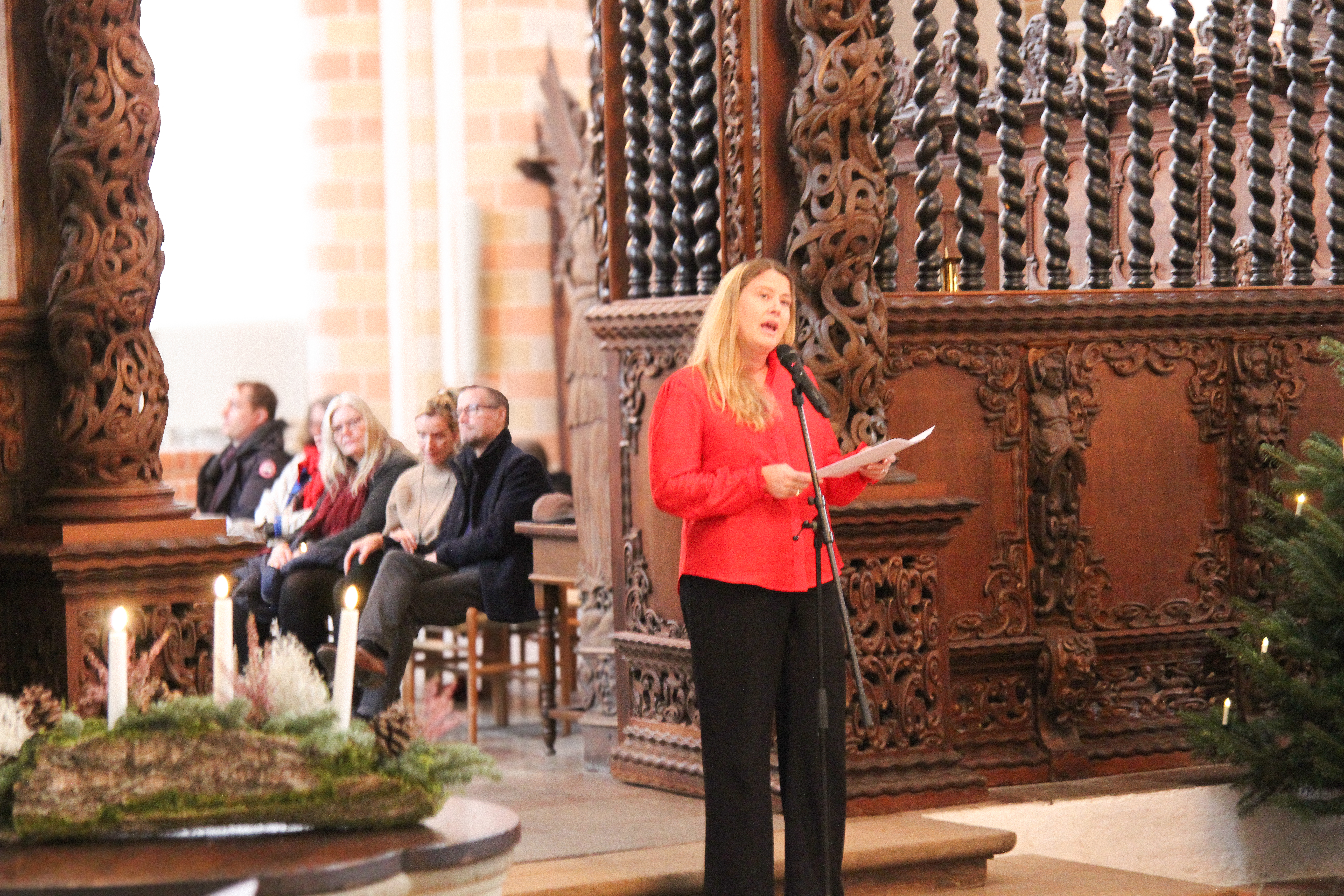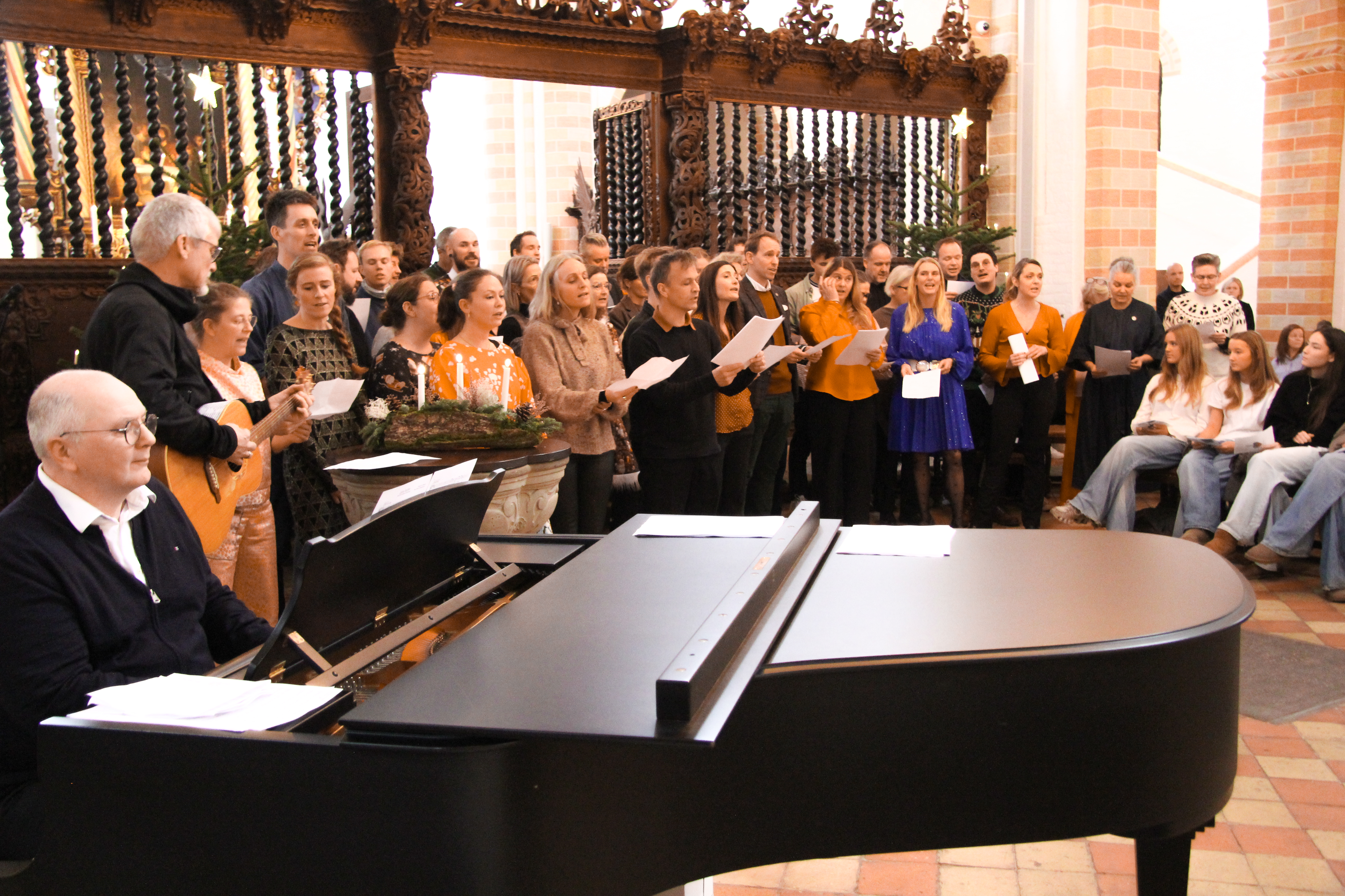 I dag hjælper Klosterkirken os med at bekræfte fællesskabet. Her er der højt til loftet – bogstaveligt talt – og plads til både sang og det, vi er fælles om. Når vi synger sammen, bærer vi de samme ord, men hver med vores baggrund og klang. Lyset falder på alle bænkerækker. For julens lys er fællesskabet.”